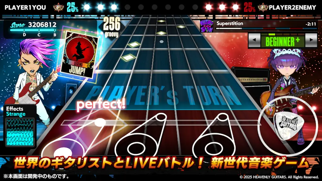 Heavenly Guitarsで繰り広げる戦略バトル&ギター職人体験 難易度をリアルタイムで変えて勝負を制するLIVEバトルだよ! 『Heavenly Guitars』の特徴は、対戦中にリアルタイムで難易度を上下できる点なんだよ! これによって、相手のミスを見逃さずに難易度... -