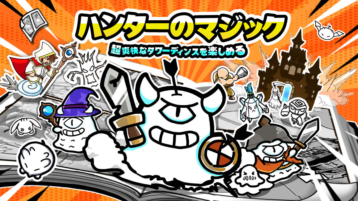 「ハンターのマジック」は、自分が魔術師になって多彩な魔法で敵の波を退けるタワーディフェンスゲームだよ!